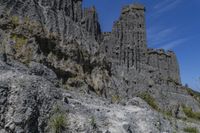 Scenic view of a rugged canyon landscape with clear skies in a mountain range
