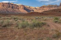 Scenic view of the red rock mountains and desert terrain in Utah, USA at dawn