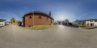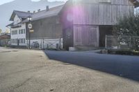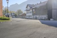 Scenic view of a residential area in Germany, surrounded by mountains and green grass. The sunny day highlights the beautiful nature and charming facade of the houses in this idyllic town.