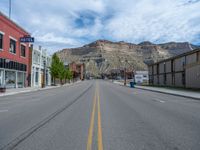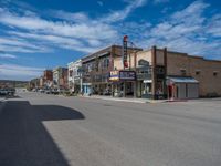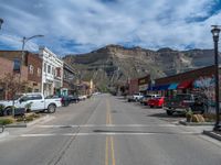 In the heart of rural Utah, a charming town unfolds along a straight road, framed by classic architecture and mountainous landscapes. Storefronts and hotels line the road, casting long shadows in the bright daylight. The town exudes a small-town charm with its quaint shops and urban design. As you stroll down the road, you can't help but be captivated by the picturesque scenery, with fluffy clouds floating overhead. This idyllic setting is the perfect destination for a peaceful getaway in the USA.