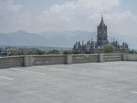 A cloudy day in Salt Lake City, Utah, USA, featuring a concrete street and a parking deck or garage.