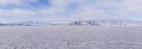 A breathtaking landscape of the USA's Utah desert, with mountains, cliffs, and clouds in the backdrop beneath a glacial ice cap and arctic mountain range.