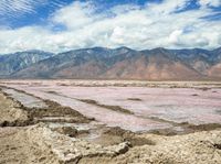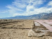A view of an open salt surface in California, USA, under a cloudy day sky.