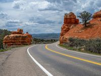 Scenic Byway 12 in Utah offers a breathtaking road trip experience. The asphalt road winds through stunning landscapes, with towering mountains and vibrant red rock formations as the backdrop. As you drive straight down the road, you'll be captivated by the natural beauty of the area. The clear blue skies and fluffy white clouds add to the picturesque scenery. This one-quarter stretch of road is a must-see for nature lovers and road trip enthusiasts alike.