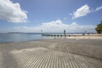 A breathtaking coastal landscape with azure waters, sandy beach, and clear blue sky on a beautiful sunny day