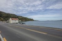 A picturesque road with a smooth asphalt surface winding through a highland landscape, surrounded by lush vegetation and stunning coastal views.