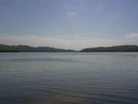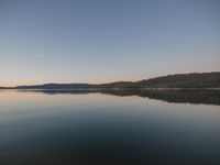 A beautiful sunrise over the coastal landscape, with calm water reflecting the clear sky and the silhouette of a tree in the foreground.