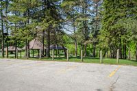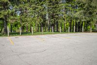 A picturesque parking lot with asphalt surface in the rural landscape of Toronto, Ontario, Canada on a sunny day