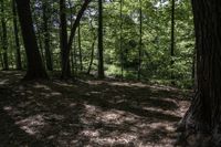 A beautiful view of the lush vegetation and tall trees in the deciduous forest of Ontario, Canada.