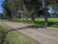 Beautiful view of a scenic landscape in California, USA with a road surrounded by lush forests and green grass.