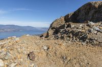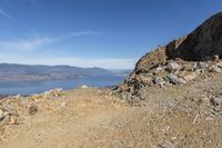 A breathtaking view of the rugged terrain and clear blue sky in Okanagan Valley, British Columbia, Canada.