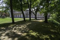 A beautiful view of the lush forest and green grass in Ontario, Canada. The historic architecture and castle add a touch of charm to the landscape.
