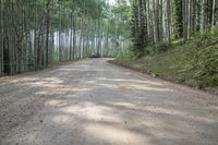 A beautiful landscape featuring trees, vegetation, and a road surface in Colorado, USA. The image showcases the stunning natural beauty of Crested Butte and Kebler Pass, with the road winding through the alpine forest. The open space and aspen trees create a picturesque scene during the day, with grass and dirt roads adding to the rustic charm.