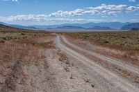 A rugged off-road track winding through the mountainous landscape of California, USA, under a clear blue sky