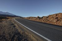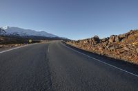 A picturesque mountain road winding through the highlands, surrounded by snow-capped peaks and lush vegetation, offering a stunning view of the natural environment.