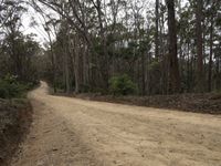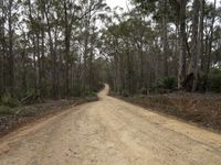 A peaceful road lined with lush vegetation and tall trees in Bournda National Park, New South Wales, Australia.