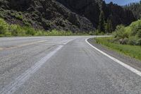 A picturesque road winding through the beautiful landscape of Colorado, USA. The asphalt road cuts through mountains, forests, and grassy hills, offering breathtaking views of nature. The clear blue sky and the lush vegetation along the road create a serene and peaceful atmosphere. This road in Crested Butte, Gunnison, showcases the natural beauty of the area and the diverse flora and fauna that thrive in this highland environment.