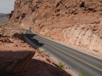 A high elevated road cuts through the stunning landscape of Colorado, USA, showcasing the natural beauty of the mountain pass and rock formations.