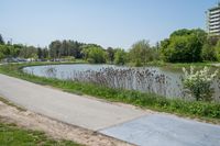 A beautiful day in Ontario, Canada, with a scenic road winding alongside a serene lake under a clear sky