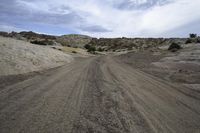 A picturesque road winding through the stunning red rock landscape of Utah's desert, with asphalt and dirt blending seamlessly into the surrounding nature. The road cuts through hills and mountains, offering breathtaking views of the San Rafael Swell and the rugged terrain. The S-curve road is flanked by rock walls, outcrops, and vegetation, showcasing the diverse formations and profiles of this canyonlands region. The road surface, covered with gravel and sand, bears witness to the erosion caused by the wind, creating unique Aeolian landforms. The high elevated ground provides a captivating view of the horizon, while trees and grass add a touch of green to the otherwise arid plain. This image captures the natural beauty and tranquility of this remote desert landscape.