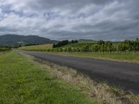 A picturesque view of a rural landscape with abundant vegetation, showcasing a green and lush plant community under a gloomy grey sky.