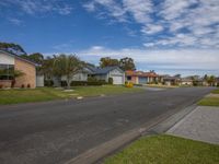 This photo captures a beautiful residential suburb in the city with well-maintained houses, abundant vegetation, and a straight road leading into the distance.
