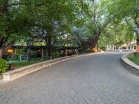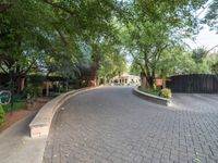 A clear sky day in Sedona, Arizona showcasing the urban design and historic architecture of the city, surrounded by greenery and lined with paver roads.