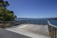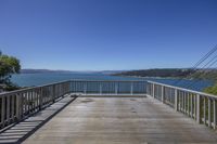 A stunning view of a tranquil lake surrounded by lush vegetation and towering trees, reflecting the clear blue sky. This picturesque scene offers a perfect recreational spot with a wooden pier and open space along the bank.