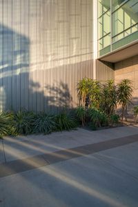 The hard shadow of Los Angeles, California, USA stretches across the concrete surface on a sunny day.