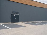 A modern skyline of Berlin, Germany, featuring an asphalt road, buildings, and parking lot, with a backdrop of clouds, trees, and vegetation.