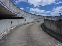 A view of a straight road surface in the city, lined with asphalt and shaded by street lights. The open space and clouds in the sky add to the urban scenery.
