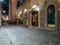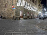 A night view of a straight road in Florence, Italy, illuminated by artificial light and surrounded by a beautiful landscape.