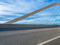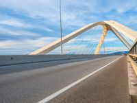 A straight road at dawn in Barcelona, Spain with clear skies and the Prat bridge in the background.