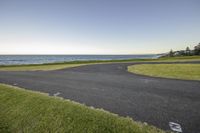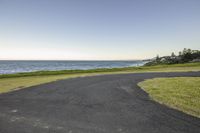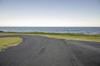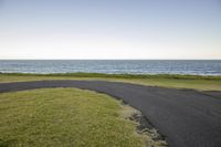 A straight road leading through a lush green landscape with clear skies and a distant horizon