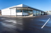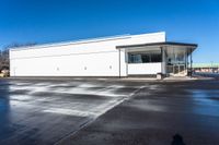 A straight road lined with storefronts and parking lots on a clear day in Toronto, Ontario, Canada.