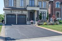 A beautiful suburban home with a stone wall and a well-maintained driveway in Toronto, Canada.