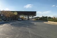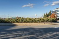 A beautiful day dawns in Ottawa, Canada, casting a hard shadow on a residential building as the sun shines on the asphalt road surface.