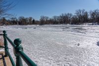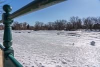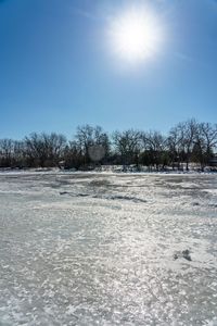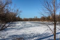 A residential suburb in Ontario, Canada, covered in snow on a sunny winter day, with open spaces and recreational parks visible in the distance.