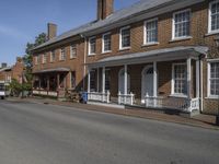 Symmetrical Facade of an Antique Brownstone Building in Tennessee, USA