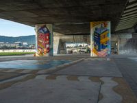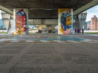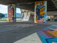 The break of day reveals a graffiti wall in a bustling urban plaza in Taipei, Taiwan in the Republic of China. A river runs alongside the asphalt road, leading the way to the city's art district.