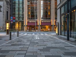 In the heart of Tokyo's bustling business district, the city comes alive with the break of day. Modern office buildings line the streets, illuminated by the warm glow of street lights and the artificial light emanating from shops and storefronts. The urban design showcases a perfect blend of traditional Japanese architecture and contemporary design, creating a unique and vibrant atmosphere. Paved roads and sidewalks provide a smooth path for pedestrians to explore the city's bustling streets, offering a glimpse into the dynamic and fast-paced city life of Tokyo.