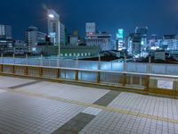 An elevated aerial view of the city of Tokyo, Japan, at night, illuminated by artificial light. Paved open spaces and street lights stand in contrast to the dark clouds above, creating an urban design unique to the city.