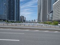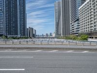In the bustling city of Tokyo, modern architecture and urban landscapes are framed by sleek Armco barriers along the asphalt roads. Bridges soar across the skyline, offering a profile of contemporary Japanese cityscapes. The cityscape is a blend of vibrant streets, with clouds floating above the dynamic urban setting, creating a captivating view of Tokyo's iconic skyline.