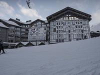 A winter scene of the Alps in France, Europe, with a mountain range, snow-covered terrain, a gondola, trees, and a track in the foreground. The clear sky and the morning light shows the beauty of the glacial mountain landforms, a popular tourist attraction and recreational ski area, during the break of day.