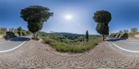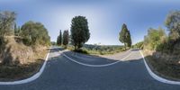 A rural landscape of Tuscany in Italy, with a winding road lined with cypress trees and a clear sky above, creates a rugged garden in the heart of Europe.