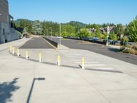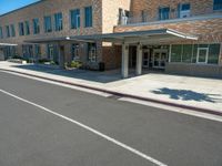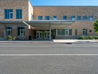 A modern office building with a glass facade stands tall in the bustling city, surrounded by vegetation and a clear sky.