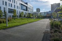 A modern office building with a sleek facade and contemporary urban design in the business district of Toronto, Canada.