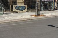 A modern urban architecture with a brick wall and a road surface in Toronto, Ontario, Canada.