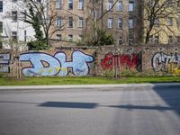 Colorful graffiti mural on a residential wall in the art district of Berlin, Germany