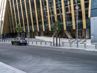 A modern urban business district in Berlin, Germany, featuring a variety of high-rise buildings, condominiums, and infrastructure, providing a contrast of futuristic architecture, metal walls, and vegetation. Automobiles, tires, and people can be seen on the road surface, and the symmetry of the scene is highlighted by the tints and shades of the city.